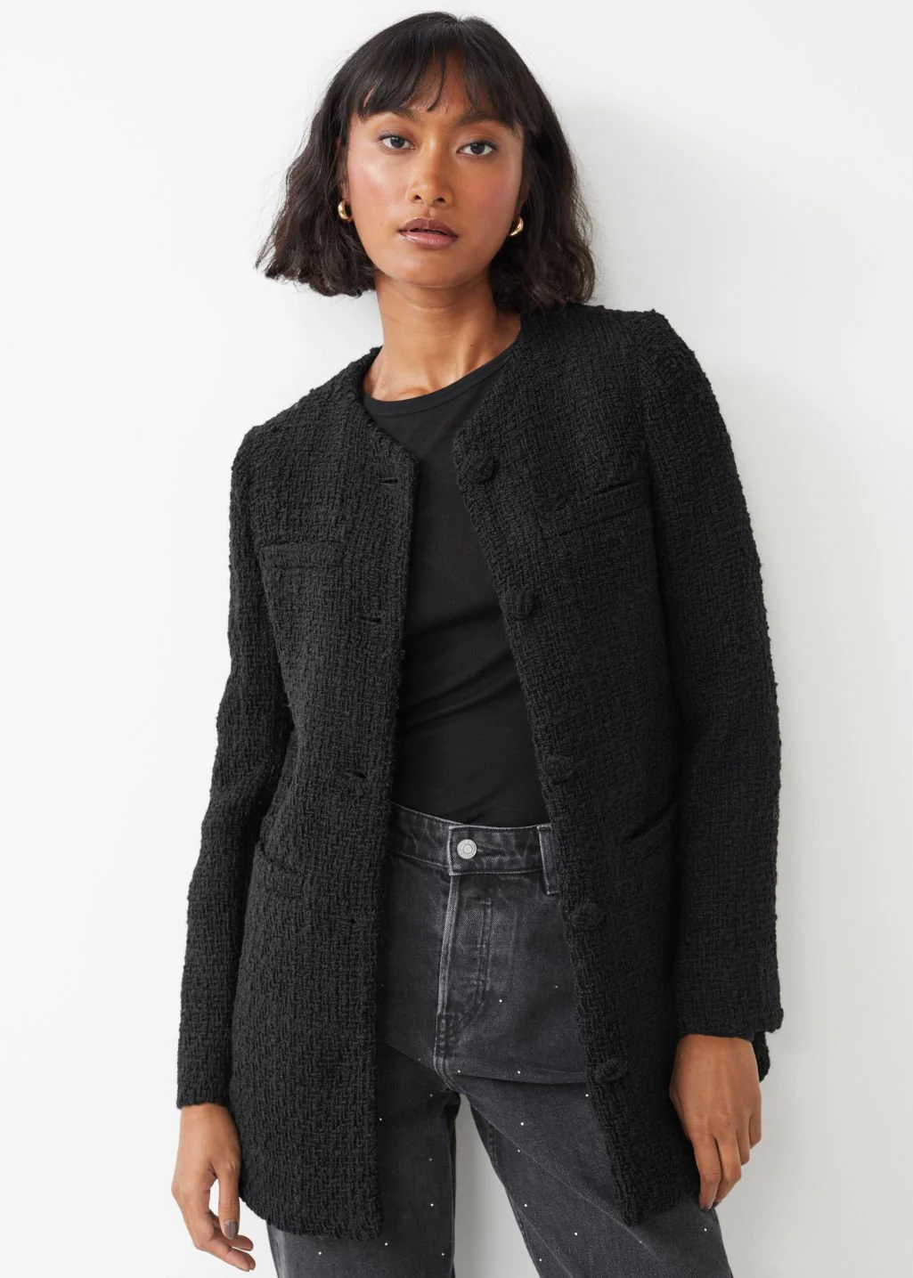 As someone who has never been a classic dresser, I am finding myself more drawn to smarter pieces as I get older. I just feel differently about how I want to get dressed and it’s smarter. I don’t want to look super trendy but I DO want to look up-to-date and a boucle or tweed jacket can help to acheive that.