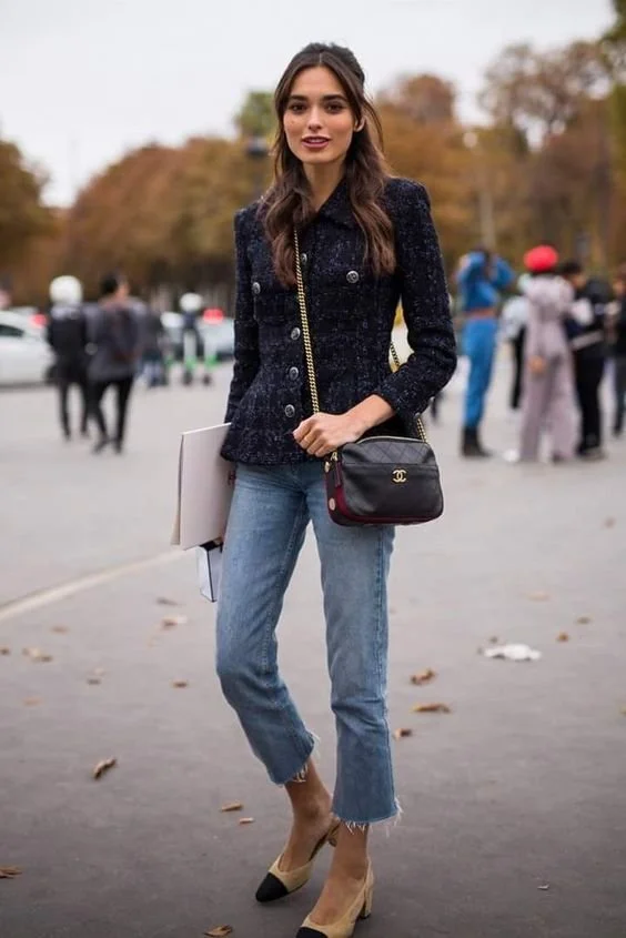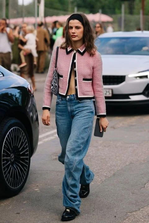 This trend for boucle or tweed cropped jackets has come back from the 90’s. There is a huge 90’s trend going on right now, particularly with minimalism and slip dresses. There’s also a Y2K revival happening but the noughties were more known for Athleisure and I don’t want to be catapulted back into pandemic dressing.