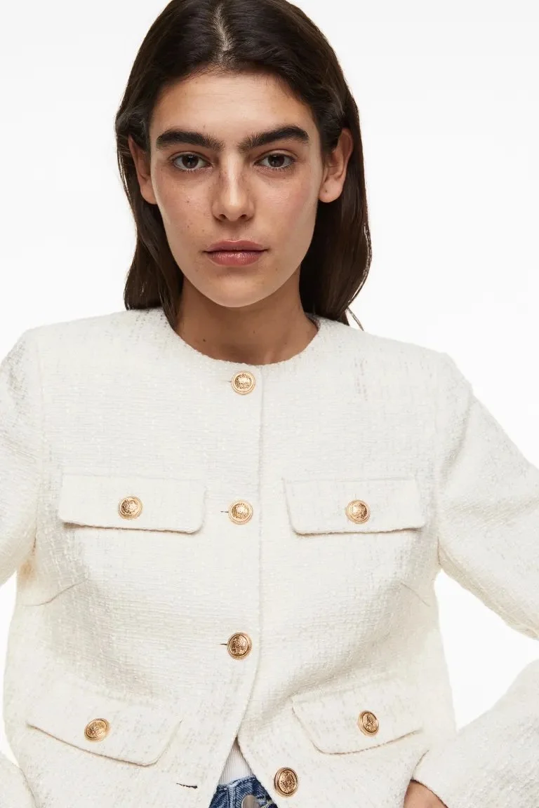 Stylish Massimo Dutti cream jacket. I love a roll neck or a pussy bow blouse under these jackets.
