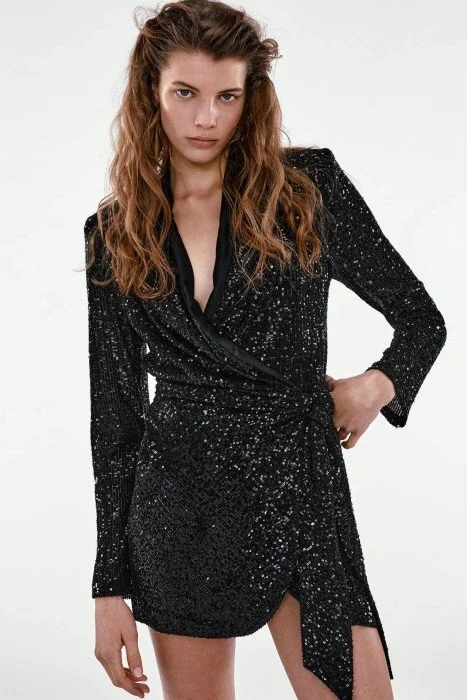 This is slightly a-line so if that shape suits you this is a good sparkly option with killer heels.