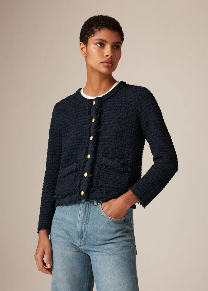 4. Next up is one of my favourites, a cropped boucle jacket/cardigan. These can be so robust in cardigan form that they count as a jacket in my book. If you are someone who feels a bit ‘trussed-up’ in tailoring or like it doesn’t really suit your lifestyle then one of these could be the answer.