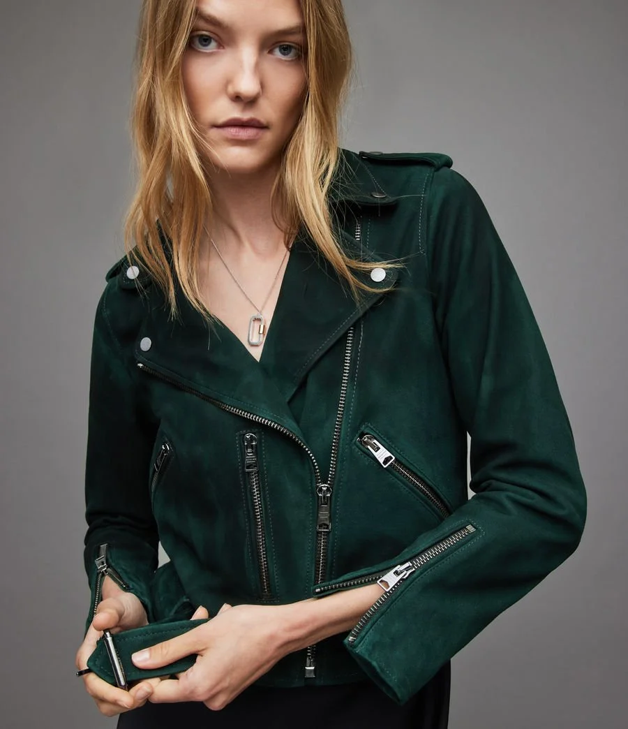 Love this unusual forest green suede biker jacket. One of my personal shopping clients bought it last week.
