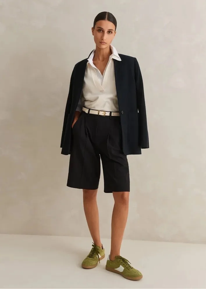 Tailored Bermuda shorts. These are surprisingly smart when worn with loafers of block heels. I also like the trainers here.