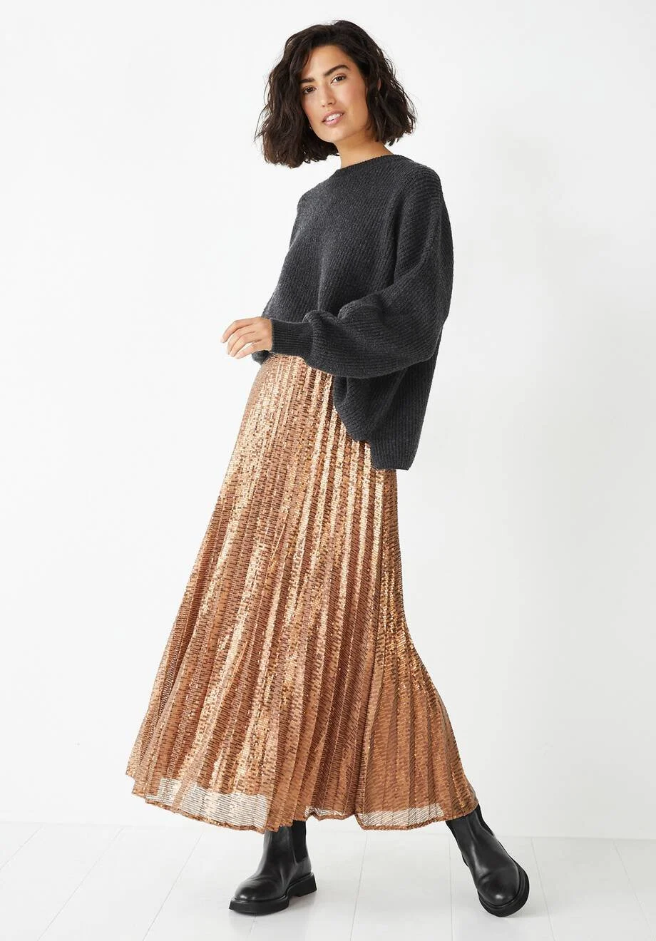 If you want an easy answer of what to wear this Christmas then look no further. The sequin skirt will have you looking festive in seconds and the brilliant thing is they look great with a cosy knit so you can be warm AND stylish all at the same time.