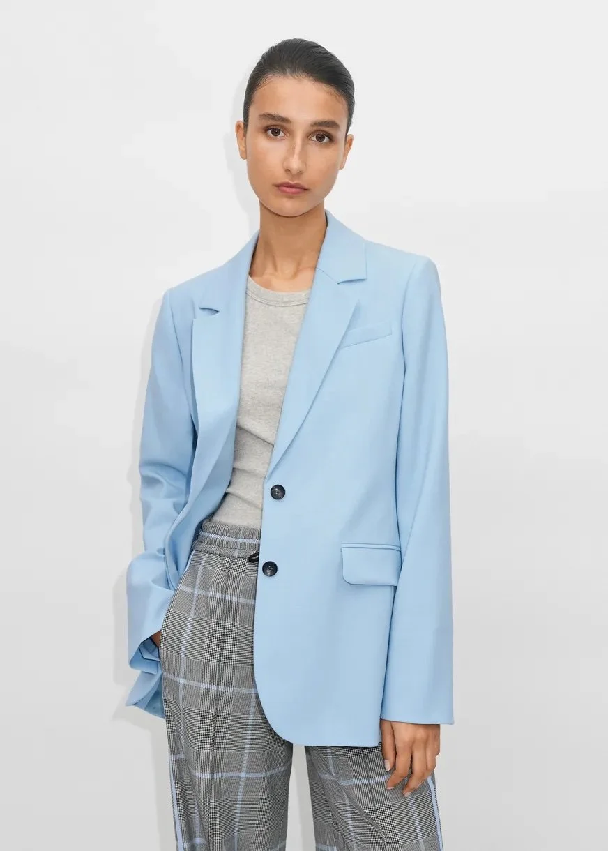 Gorgeous Spring blue blazer. Goes well with the check trackpants.
