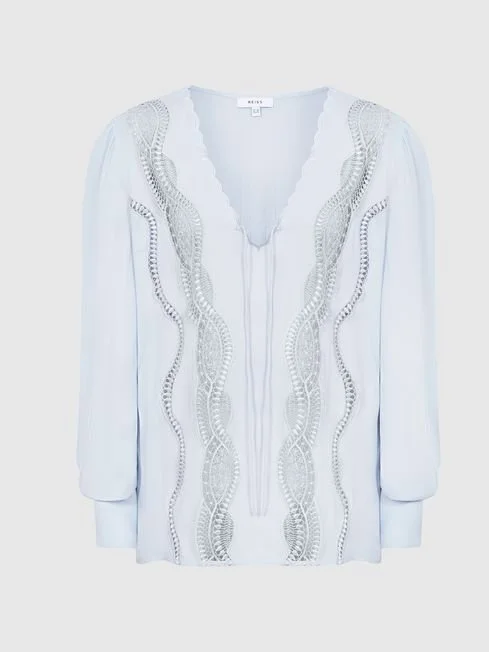 This pale blue goes really well paired with burgandy. Your work corporate or formal wardrobe doesn’t need to be navy, grey and black all the time. Reiss do great blouses.