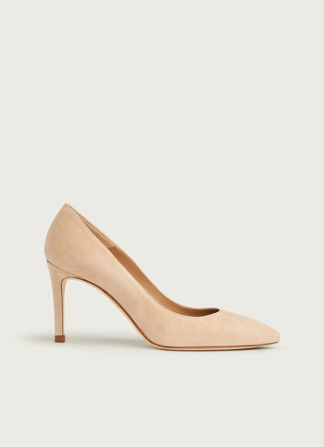A pair of suede beige courts go with everything. These come in tons of other colours so a couple of pairs would be worthwhile.